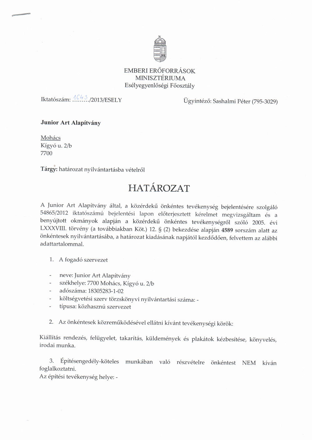 Az Alapító Okirattal kapcsolatos végzés letölthető a következő linken: Végzés |
