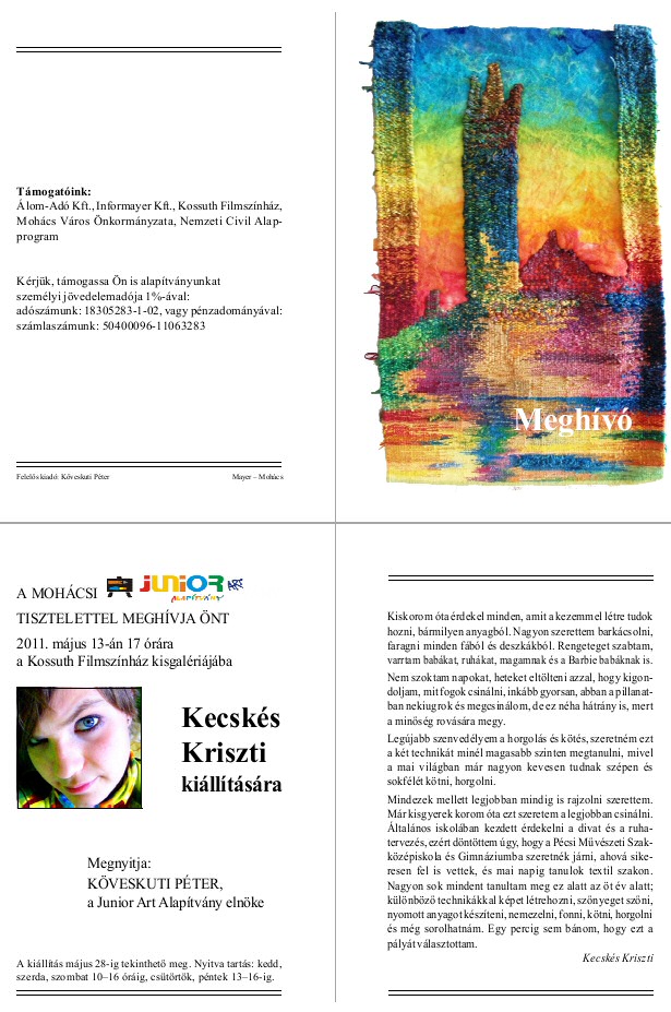 A mohácsi Junior Art Alapítvány tisztelettel meghívja Önt